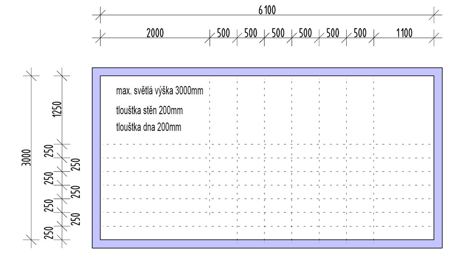 Vana je pravoúhlá, obdélníkového půdorysu s velkým množstvím rozměrových variant. Je vyrobena jako jeden odlitek bez pracovní spáry. Tloušťka stěn a dna je 200mm, tím objekt dostává mimořádnou mechanickou odolnost a vodonepropustnost.
